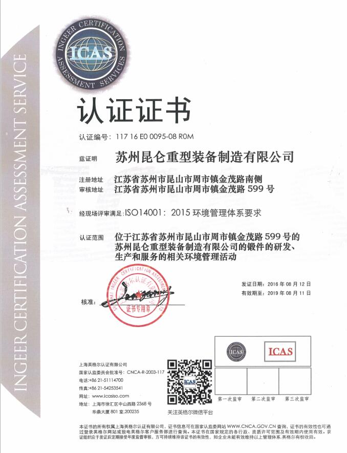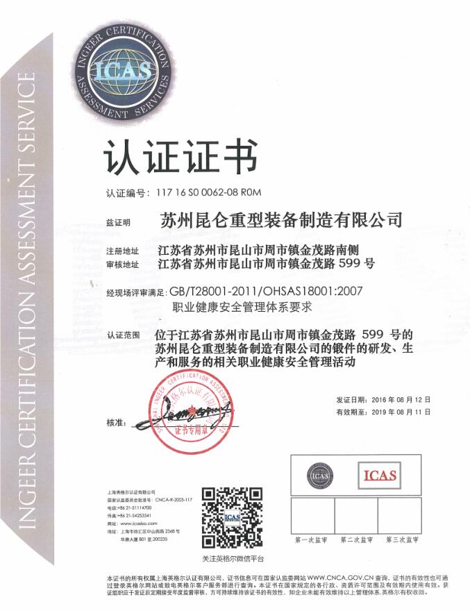 2016年7月,在公司各部門的共同努力下,通過了ISO14001環(huán)境管理體系和OHSAS18001職業(yè)健康安全管理體系的評(píng)審,并取得了頒發(fā)的兩體系認(rèn)證證書。